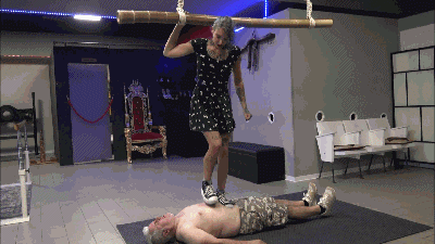 This mistress was wearing her sneakers when he chose to use her sneakers to trample the shit out of this slave. She was fed up with the way in which he acted and she felt that the best thing to do to him was to make sure that he learned never to piss her off. That is why she danced on top of him with her sneakers and made him learn his lesson.